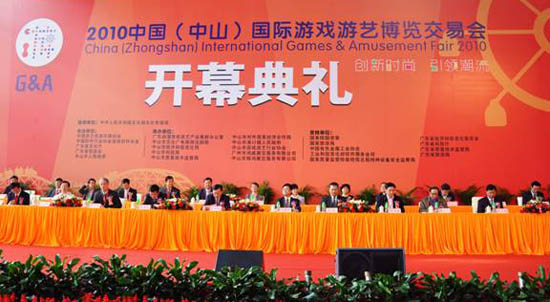 2010年11月3日—6日,由國家文化部文化市場司作為指導單位,中國游藝機游樂園協(xié)會、中國軟件行業(yè)協(xié)會游戲軟件分會、廣東省文化廳、廣東省貿(mào)促會與中山市人民政府聯(lián)合主辦的2010中國(中山)國際游戲游藝博覽交易會(簡稱“游博會”)在廣東省中山市博覽中心隆重開幕。