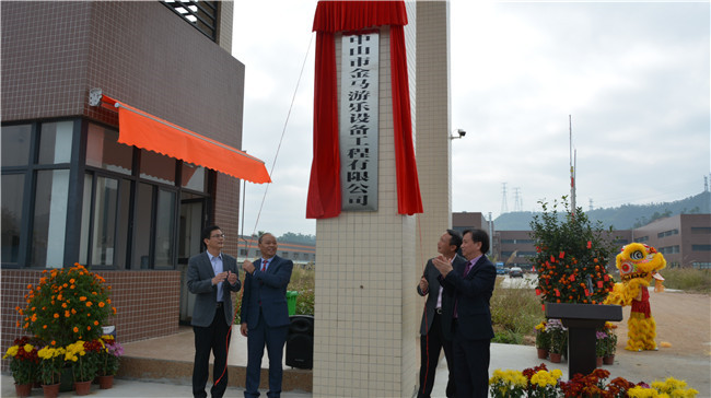 揭牌儀式簡單而隆重,在醒獅歡騰的熱烈氣氛中,歐陽錦全書記、趙錫雄鎮(zhèn)長、鄧志毅董事長、劉喜旺總經(jīng)理共同為中山市金馬游樂設(shè)備工程有限公司揭牌。