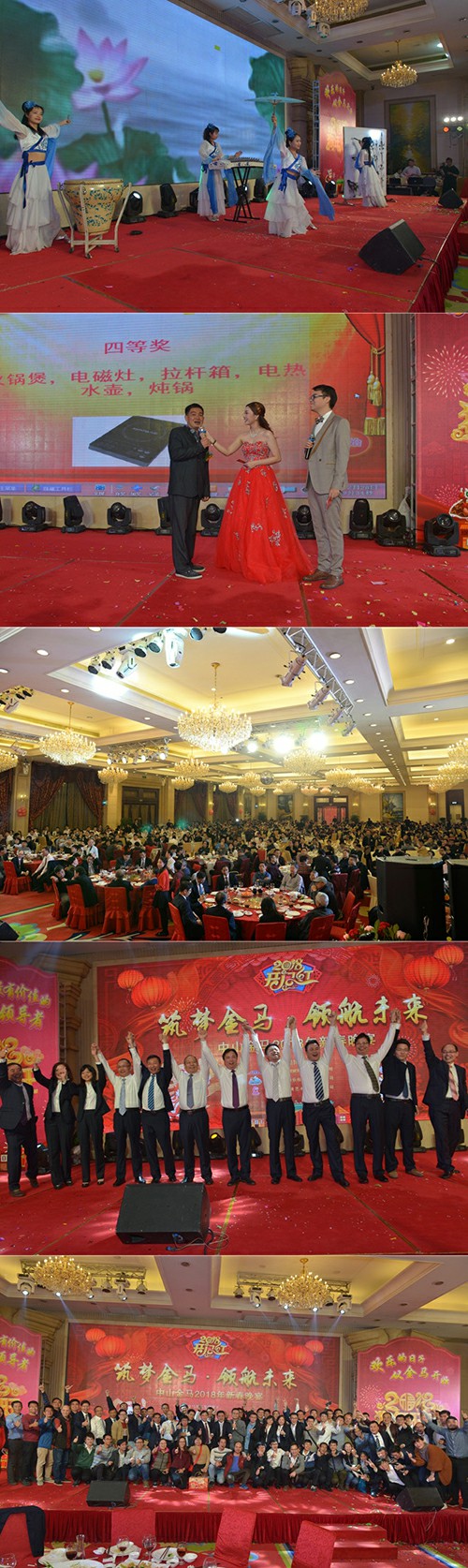 晚會現(xiàn)場,同行云集,燈光璀璨,激情四射的歌舞表演,催人奮進的年度表彰、扣人心弦的幸運抽獎、倍感溫暖的節(jié)日慰問。歡歌笑語中,團結(jié)、拼搏、創(chuàng)新的金馬人們展示了金馬團隊積極向上的精神風(fēng)貌,增強了金馬人的凝聚力和歸屬感,弘揚了金馬企業(yè)精神。就公司在2017年所取得的成績,金馬公司鄧志毅董事長在晚會致辭中表示,“金馬的輝煌成績離不開今天金馬人的團結(jié)和努力,2017年是金馬公司保持良好發(fā)展勢頭的一年,是拓展業(yè)務(wù)、團隊建設(shè)、技術(shù)創(chuàng)新取得驕人成績的一年,是金馬全體員工迎接挑戰(zhàn)、經(jīng)受考驗、克服困難、出色完成規(guī)劃的一年。在新的一年來臨之際,我們更應(yīng)該卯足干勁、攜手同心、再創(chuàng)金馬輝煌”!