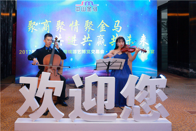 金色八月,熱情似火,有朋自遠方來,逢盛事喜相聚。為了對即將召開的第十屆中國(中山)國際游戲游藝博覽交易會表示熱烈的祝賀,以及對多年來一直關(guān)心、支持金馬健康發(fā)展的合作伙伴和嘉賓表示誠摯的歡迎和衷心的感謝,8月10日晚,乘著行業(yè)盛會的東風,公司在中山喜來登酒店舉行了盛大的客戶招待晚宴。國內(nèi)外新來客商、嘉賓、媒體記者200余人應(yīng)邀出席,與公司管理層及員工代表們共同感受了一場精彩紛呈的盛宴,度過了一個充滿歡樂與活力的難忘之夜。