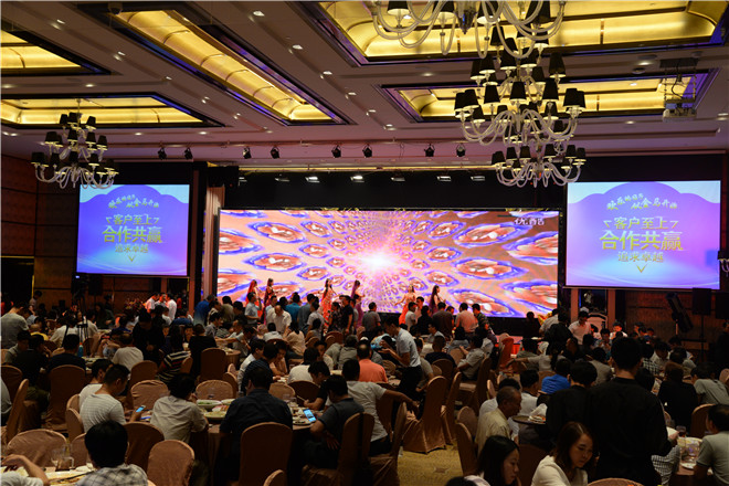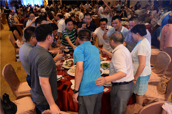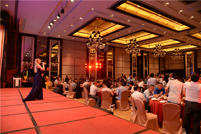 晚宴現(xiàn)場,公司全新拍攝的企業(yè)形象片正式對外展示,以緊跟時代腳步與公司發(fā)展軌跡的內(nèi)容,向眾客商、嘉賓及媒體呈現(xiàn)了一個突飛猛進的金馬形象。在對2016年公司研發(fā)的新產(chǎn)品集錦進行回顧時,眾人更是生動形象地看到了一個實力金馬,正如劉喜旺總經(jīng)理的致辭所言“中山金馬追求又好又快的發(fā)展,追求厚積薄發(fā)式的飛躍產(chǎn)品厚積薄發(fā),量的積累已經(jīng)達到了質(zhì)的突變”。宴會上,滿堂燈光璀璨奪目,鮮花氣球五彩繽紛,來自各地的客商、嘉賓熱烈交談,酒斟交錯間歡聲笑語不斷,席間還伴以助興歌舞與魔術(shù)節(jié)目、幸運抽獎游戲、客戶互動采訪環(huán)節(jié)等,一種愉悅、和樂的氛圍油然而生。近三個小時的歡聚后,晚宴在一場《越來越好》歌伴舞節(jié)目的祝福和憧憬中慢慢降下了帷幕。