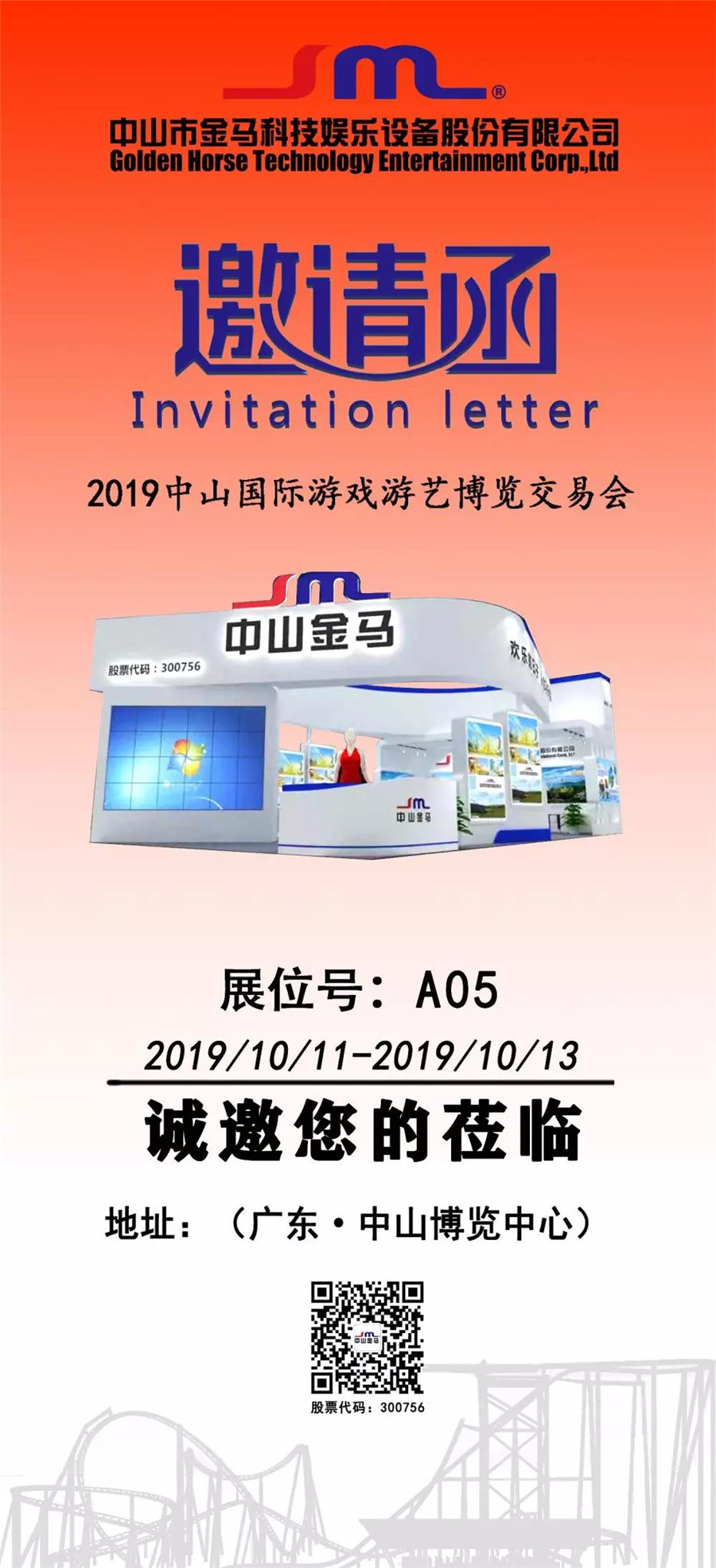 【中山金馬】尊敬的先生\女士:衷心的感謝您及貴公司對中山金馬一如既往的支持和信賴,我司即將參加2019中山國際游戲游藝博覽交易會(huì),在此我們誠摯的邀請您前來觀展。