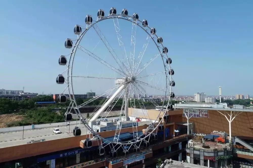 GLC-52A觀覽車是中山金馬自主研發(fā)的觀覽車類游藝機(jī)。整個(gè)產(chǎn)品由塔架、主軸、轉(zhuǎn)盤、吊廂、驅(qū)動(dòng)系統(tǒng)組成。塔架由2根立柱構(gòu)成,分布在轉(zhuǎn)盤一側(cè),整個(gè)轉(zhuǎn)盤呈懸臂梁結(jié)構(gòu),在塔架支撐的基礎(chǔ)上增加鋼索固定。主軸水平布置,主軸上的轉(zhuǎn)筒隨著設(shè)備運(yùn)行而轉(zhuǎn)動(dòng)。轉(zhuǎn)盤采用桁架式結(jié)構(gòu),轉(zhuǎn)盤上均勻地分布著30個(gè)吊廂,每個(gè)吊廂最大乘客量6人。游客乘座吊廂沿轉(zhuǎn)盤運(yùn)行,體驗(yàn)著觀光賞景的樂趣;新穎獨(dú)特的懸臂結(jié)構(gòu),再配以明麗變幻、動(dòng)感迷人的燈飾,別具匠心的現(xiàn)場配景,以及柔美動(dòng)聽的背景音樂,使得本設(shè)備深受游客的歡迎,也是一個(gè)重要的城市地標(biāo)。