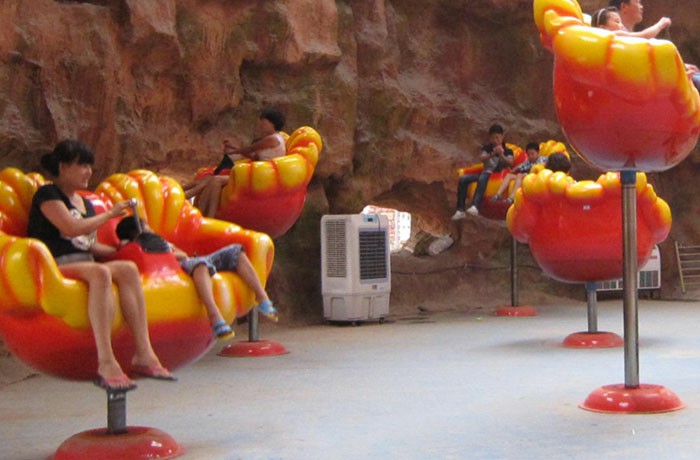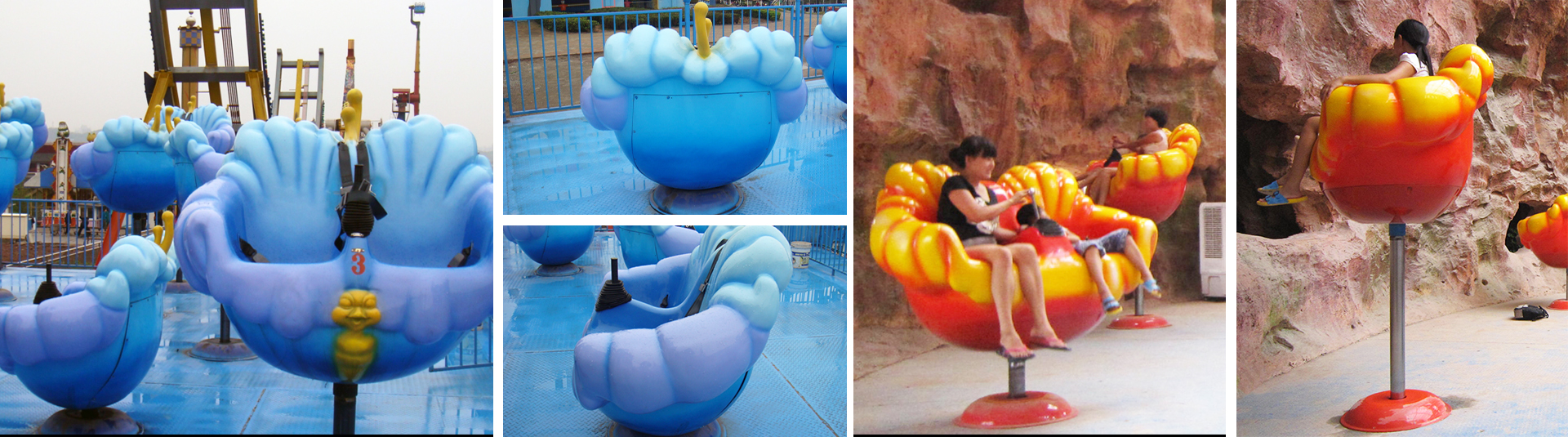 同時作升降、旋轉運動。整套設備由座艙、平臺、氣動系統(tǒng)、電氣控制系統(tǒng)等所組成。蝴蝶造型的玻璃鋼座艙,栩栩如生。設備伴隨著明快的音樂有節(jié)奏地上升和下降,座艙可以乘坐二人,座艙的旋轉由乘客自由操作。同一時間場地里的座艙此起彼伏,猶如一片蝴蝶歡快地上下跳躍、舞動,使人有如置身于大舞臺,盡情地翩翩起舞。