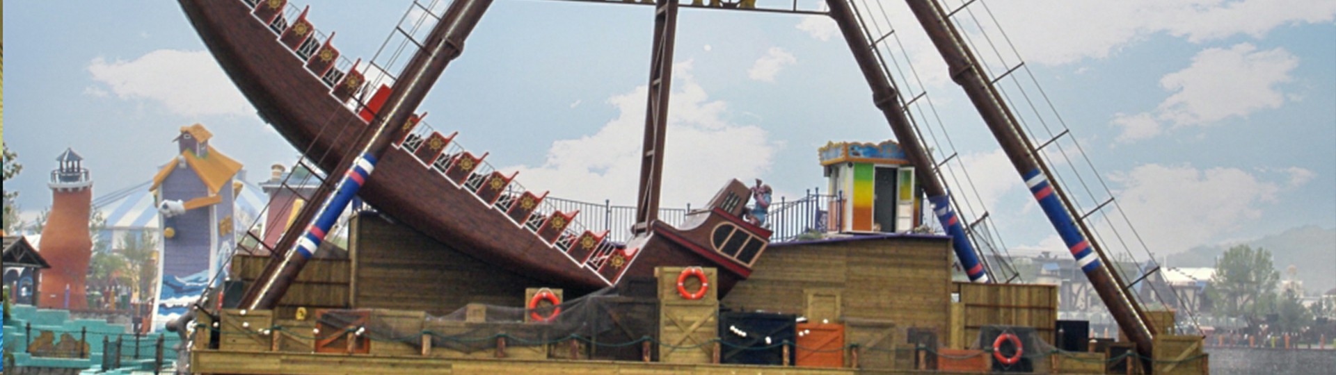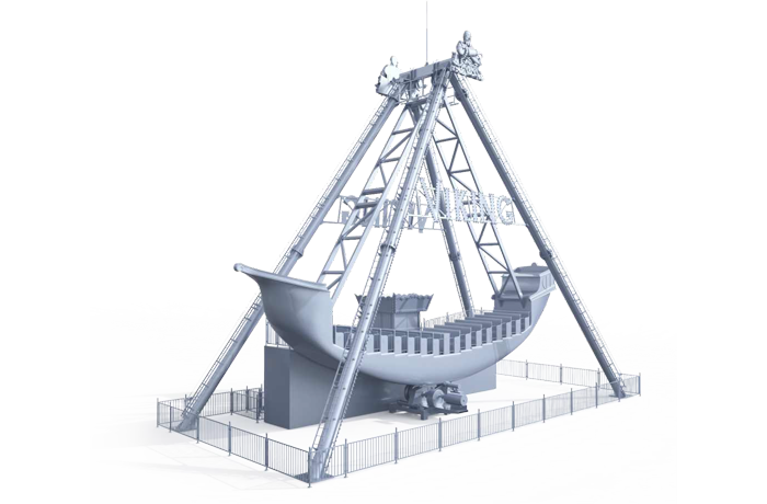 海盜船繞水平軸來回?cái)[動(dòng),模擬海盜乘風(fēng)出海的場景,交替而至的失重和超重感讓乘客盡情體驗(yàn)搖擺的樂趣。16排座椅,承載96人。