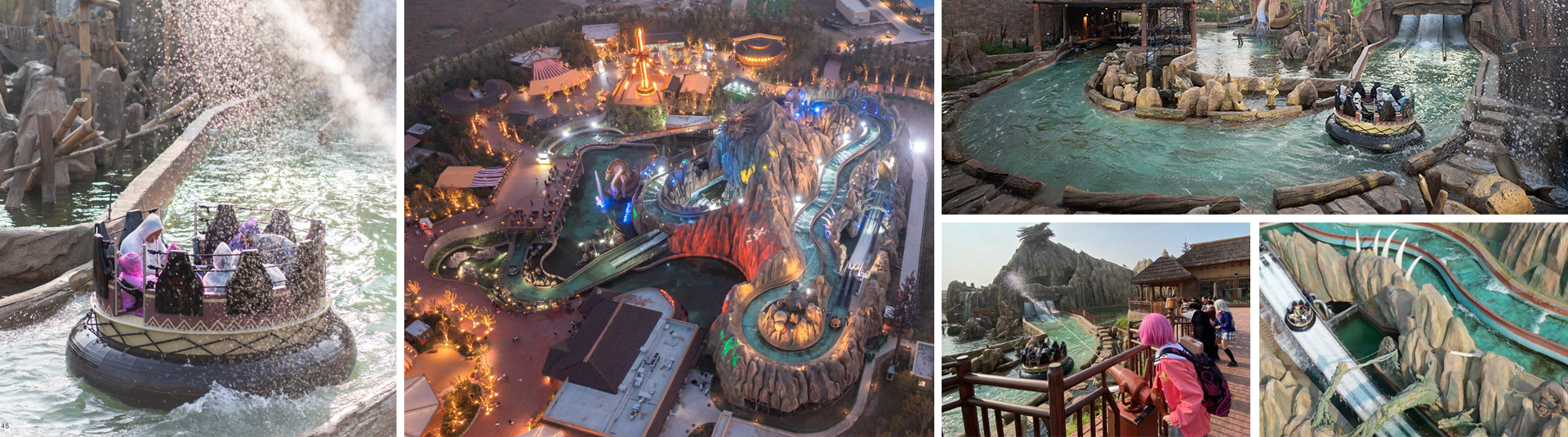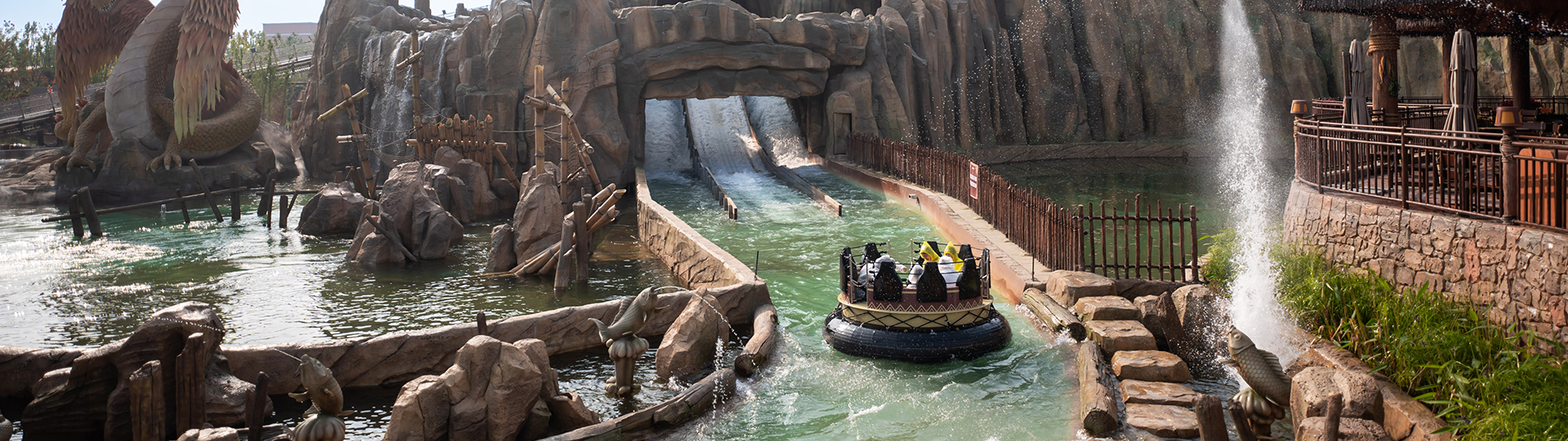 漂流以秘境探險為主題,9人大筏適合家庭、親友一起游玩。漂流速度通過巧妙的水道設計來控制,速度時而平緩時而急速,漂流筏在水道中時而旋轉(zhuǎn)時而碰撞并兩次下沖,從而讓游客體驗到逼真河道漂流。