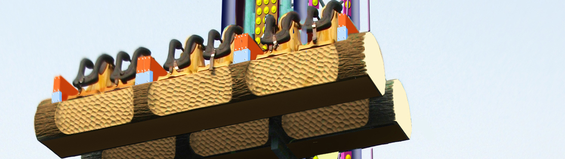 雙排青蛙跳以跳躍為主題,座艙在塔體上做上下移動,當運行到最高位置時座艙會向前傾轉(zhuǎn)約10°,令乘客體驗到失重、超重以及在高空突然前傾的多重游玩感受。