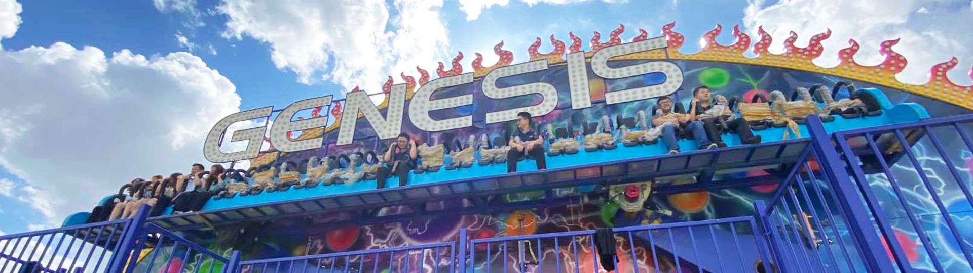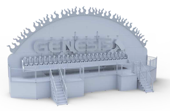 排山倒海在液壓馬達(dá)的驅(qū)動下,兩個擺臂帶動座艙轉(zhuǎn)動,配合座艙的整體平動,實(shí)現(xiàn)圓形的座艙運(yùn)動軌跡。乘客并排座于座艙中充分感受順時、逆時交替變速旋轉(zhuǎn),勢如上山下山的時空交錯感。