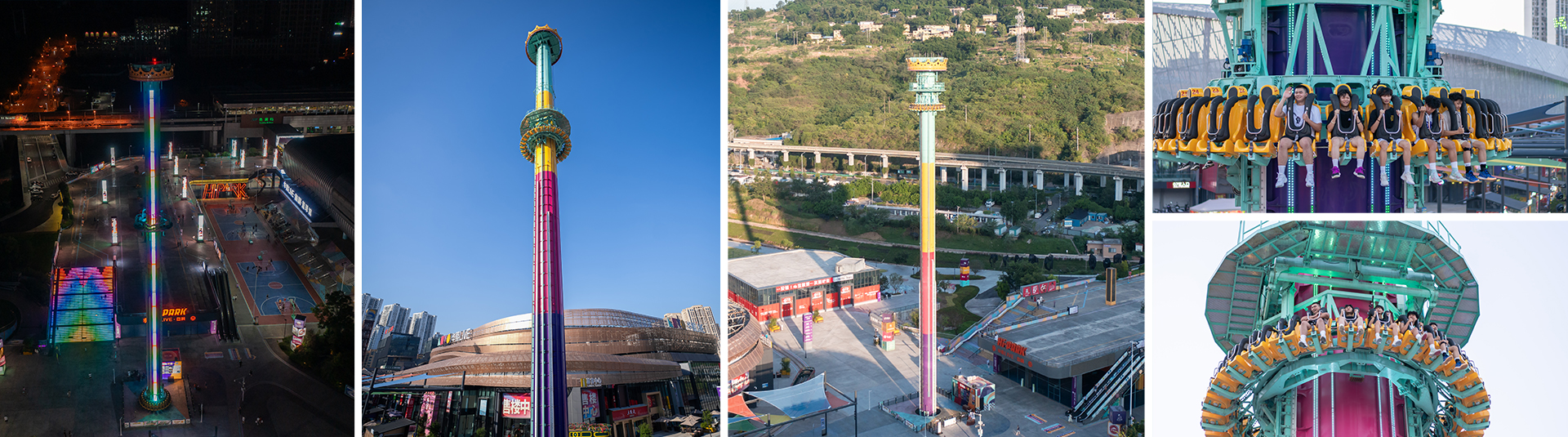 ?由塔集成觀光與失重雙重體驗于?體。在?由塔上升過程中,游客可盡情觀賞周邊景?;在?由塔下降時,通過設(shè)備的加速與減速,給予游客異于尋常的加速度升降驚險感受。
