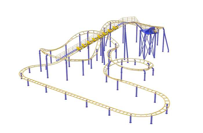 家庭過山車由列車、軌道、立柱、提升系統(tǒng)、推車裝置系統(tǒng)、制動系統(tǒng)、氣動系統(tǒng)、控制系統(tǒng)等部分組成。兩列車體造型小巧玲瓏,親子氛圍濃厚,是親子主題樂園的必選設(shè)備。