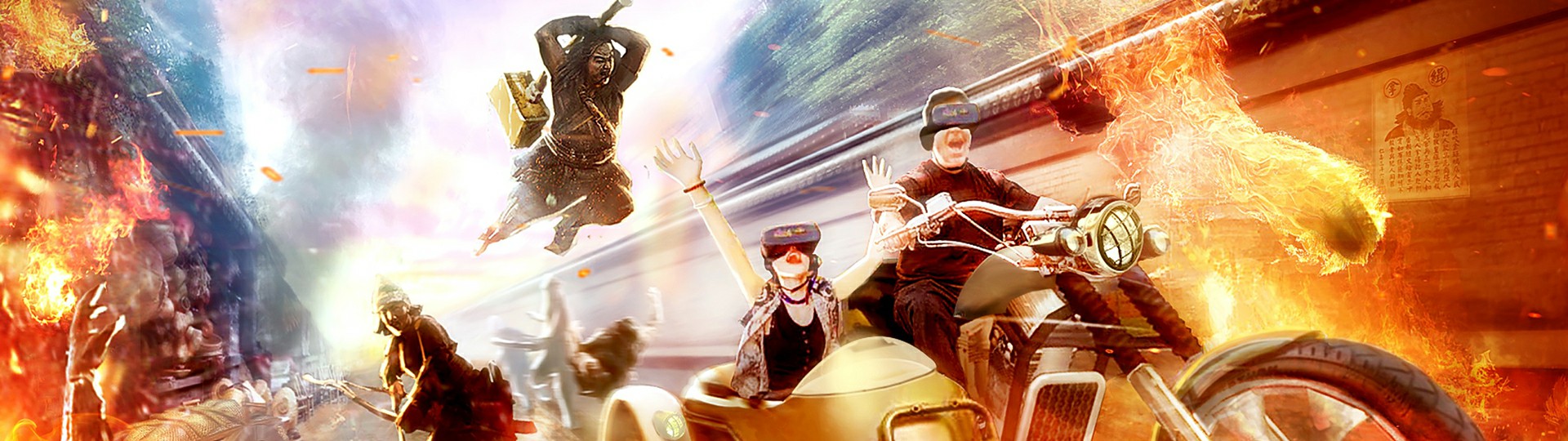 國(guó)內(nèi)首創(chuàng)的乘騎式VR動(dòng)感影院,乘客佩戴VR頭盔坐在三自由度動(dòng)感摩托車上,車體將根據(jù)故事情節(jié)的發(fā)展作出相應(yīng)的升降、仰俯、擺動(dòng)等動(dòng)作,配合逼真的環(huán)境特效,讓乘客在虛擬的世界中無限探索,刺激感大大提升